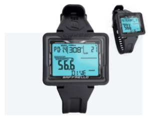zeigt Ihre Tauchdaten auf einen Blick an und der eingebaute Kompass hält Sie während Ihres Tauchgangs sicher auf Kurs. Mit seinem flachen Design sitzt der Raffaello bequem am Handgelenk und das lange Armband aus 100 % Silikon sorgt für einen perfekten Halt, selbst wenn Sie einen Trockentauchanzug